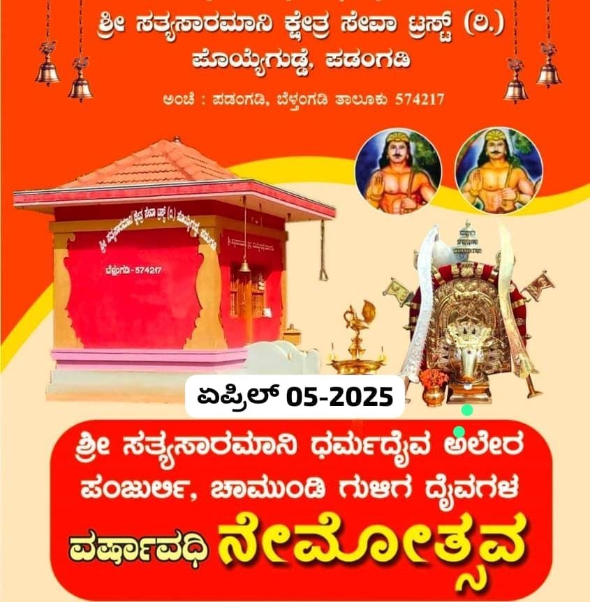 ಶ್ರೀ ಸತ್ಯಸಾರಮಾನಿ 'ಕಾನದ ಕಟದ', ಧರ್ಮದೈವ ಅಲೇರಪಂಜುರ್ಲಿ ಮತ್ತು ಚಾಮುಂಡಿ ಗುಳಿಗ ದೈವಗಳ ಕ್ಷೇತ್ರ ವರ್ಷಾವಧಿ ನೇಮೋತ್ಸವ ಏಪ್ರಿಲ್ 5ಕ್ಕೆ…