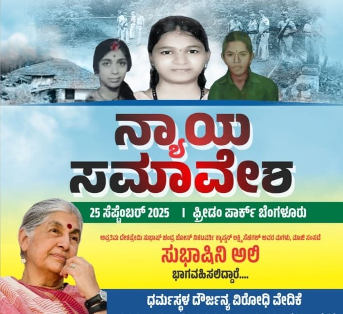 ಹೋರಾಟಗಾರ್ತಿಮಾಜಿ ಸಂಸದೆ ಸುಭಾಷಿನಿ ಉಪಸ್ಥಿತಿ ಬೆಳ್ತಂಗಡಿ : ಧರ್ಮಸ್ಥಳ ಗ್ರಾಮದಲ್ಲಿ ನಡೆದಿರುವ ಅಸಹಜ ಸಾವುಗಳು , ಅತ್ಯಾಚಾರ , ಕೊಲೆ…
